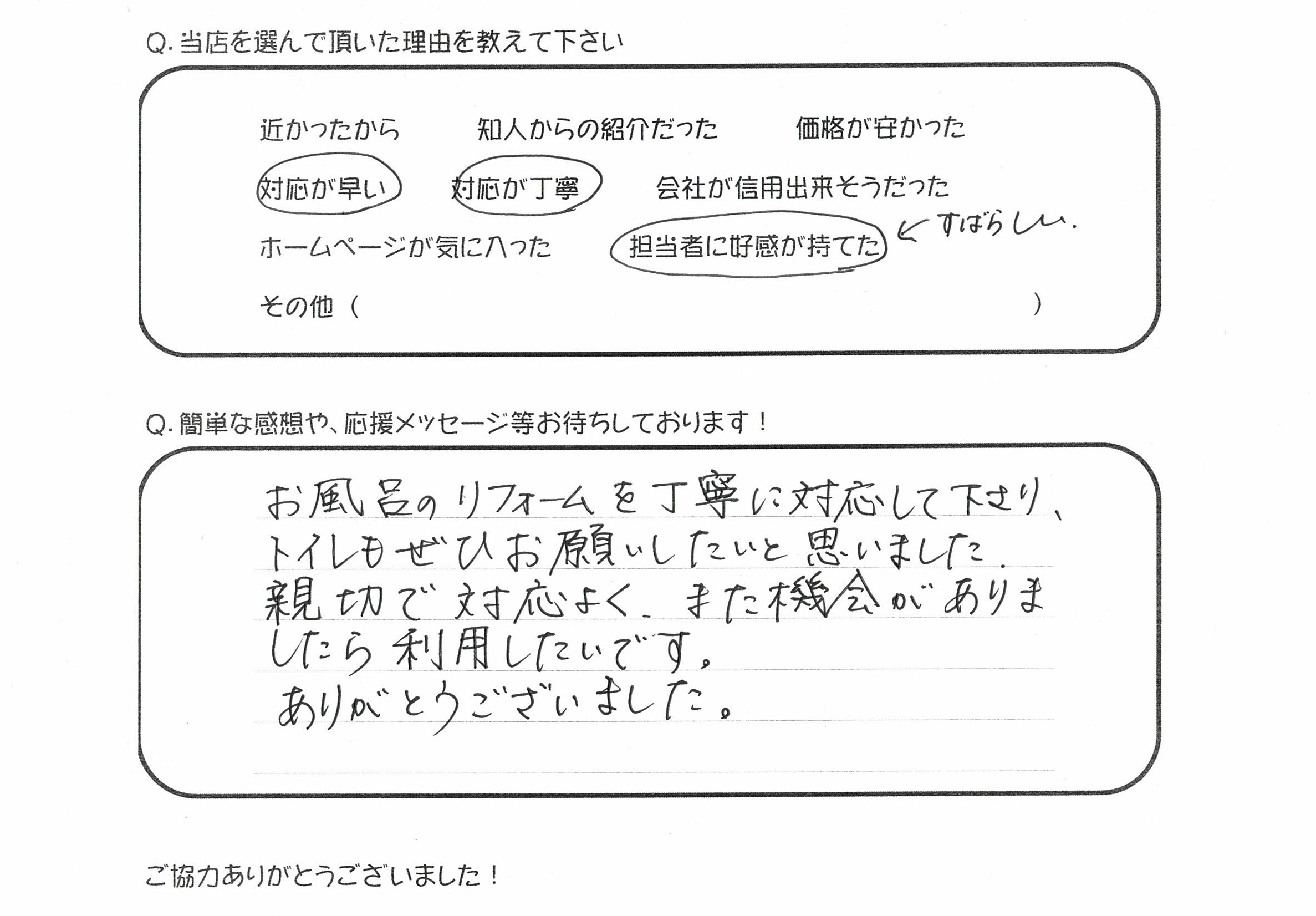 今回のトイレのリフォームも喜んでいただけて嬉しい限りです。