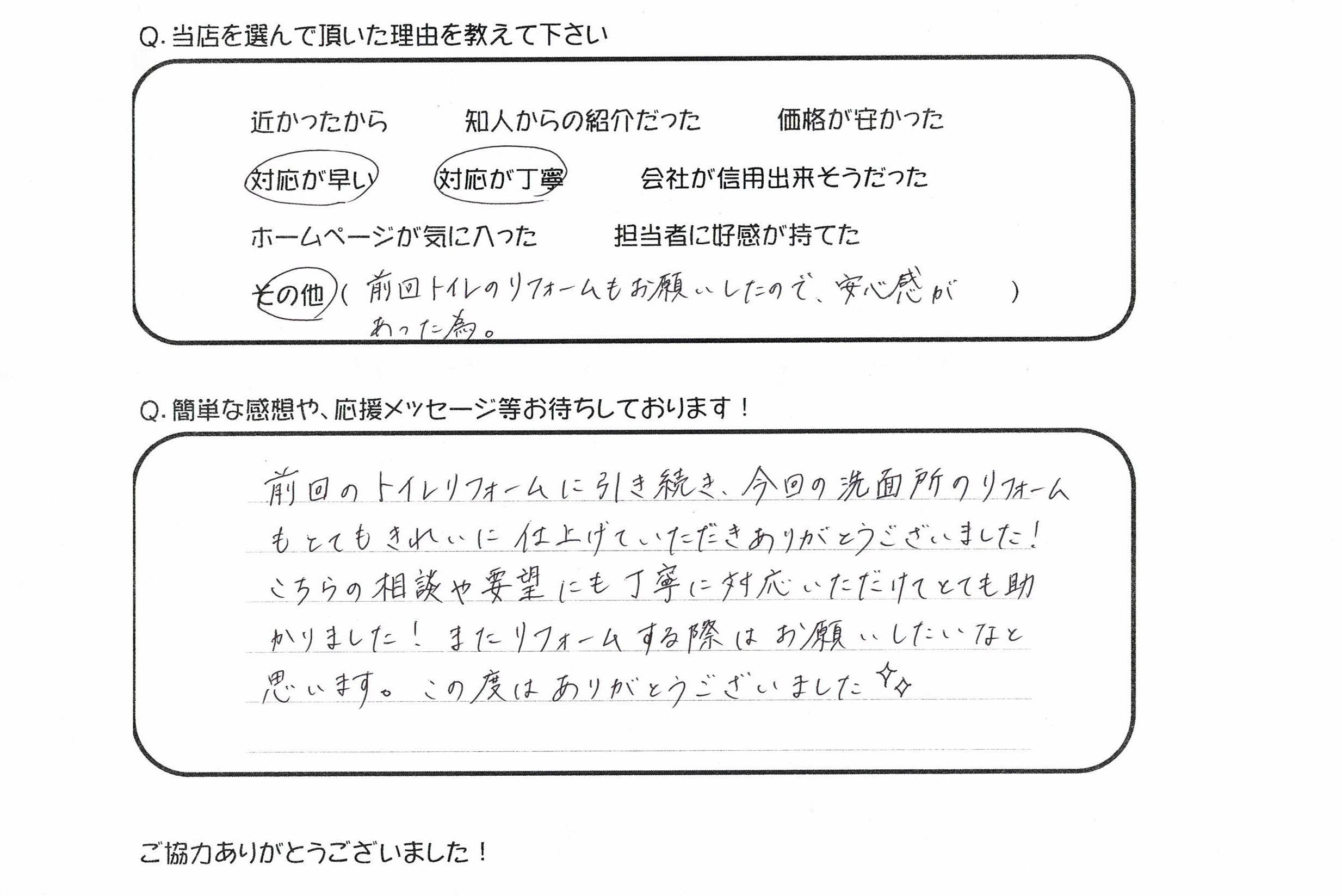 またリフォームする際はお願いしたいと思います